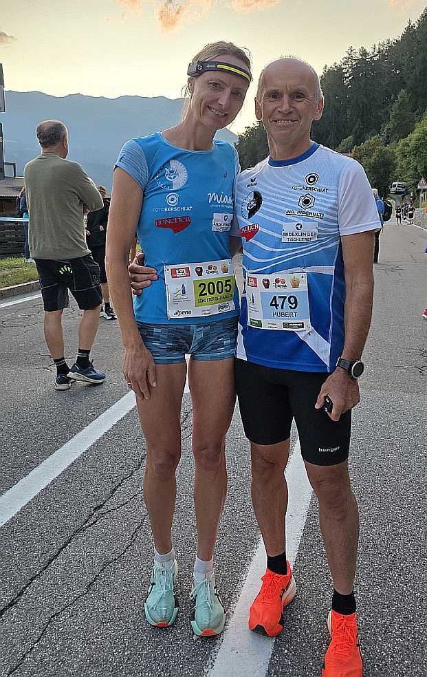 Während sich Bernadette, nachdem sie lange auf dem 2. Platz unterwegs war, mit orthopädischen Problemen schlussendlich als 4. der allgem. Klasse und 2. der Klasse W40 nach 59:15 Minuten ins Ziel kämpfte, erreichte ihr Partner Hubert, kurz darauf mit der Laufzeit von 59:31 Minuten den 5. Platz der Klasse M55.