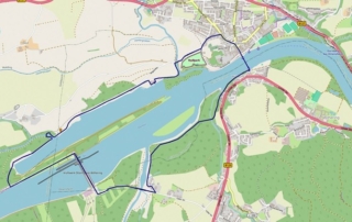 Wir parkten unsere Autos beim Kraftwerk Wilhering, über das wir gleich auf die andere Seite wechselten. Kurz führte der Weg donauaufwärts, bevor wir rechts zur Regattastrecke einschwenken konnten.