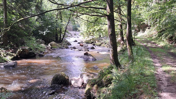 Vom Ursprung setzte sich der Weg wieder über verschieden beschaffene Weg weiter fort bis zum Teufelsbrünnl. Das Teufelsbründl ist eine etwa 3000 Jahre alte Kultstätte am Heidenstein. Sie wird als eine mögliche Kultstätte für den romano-keltischen